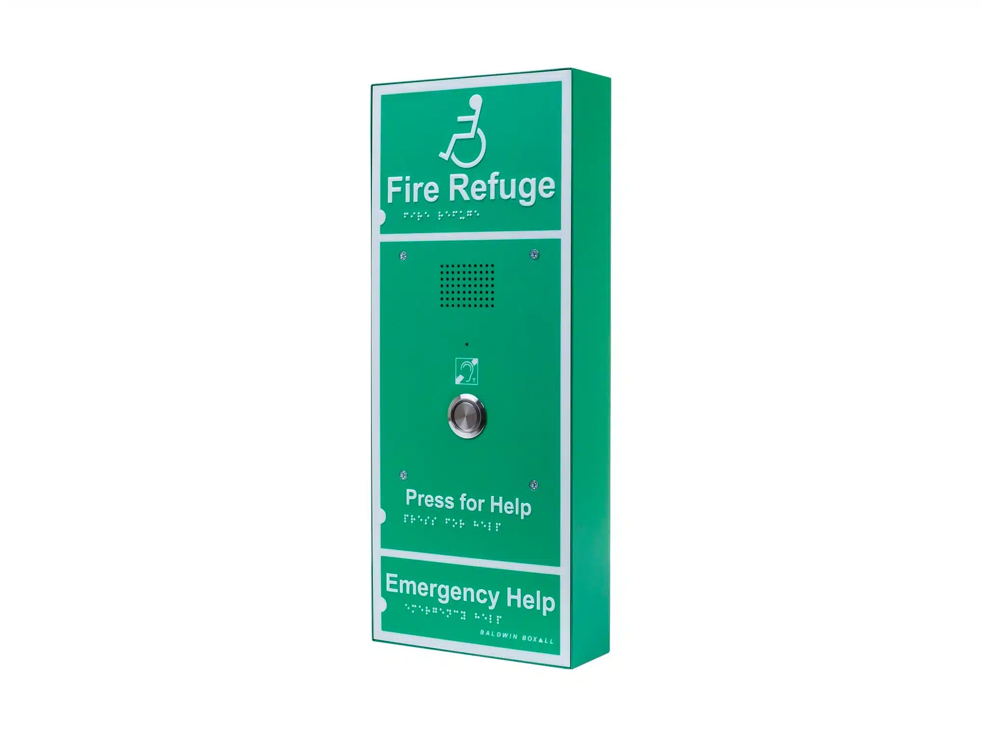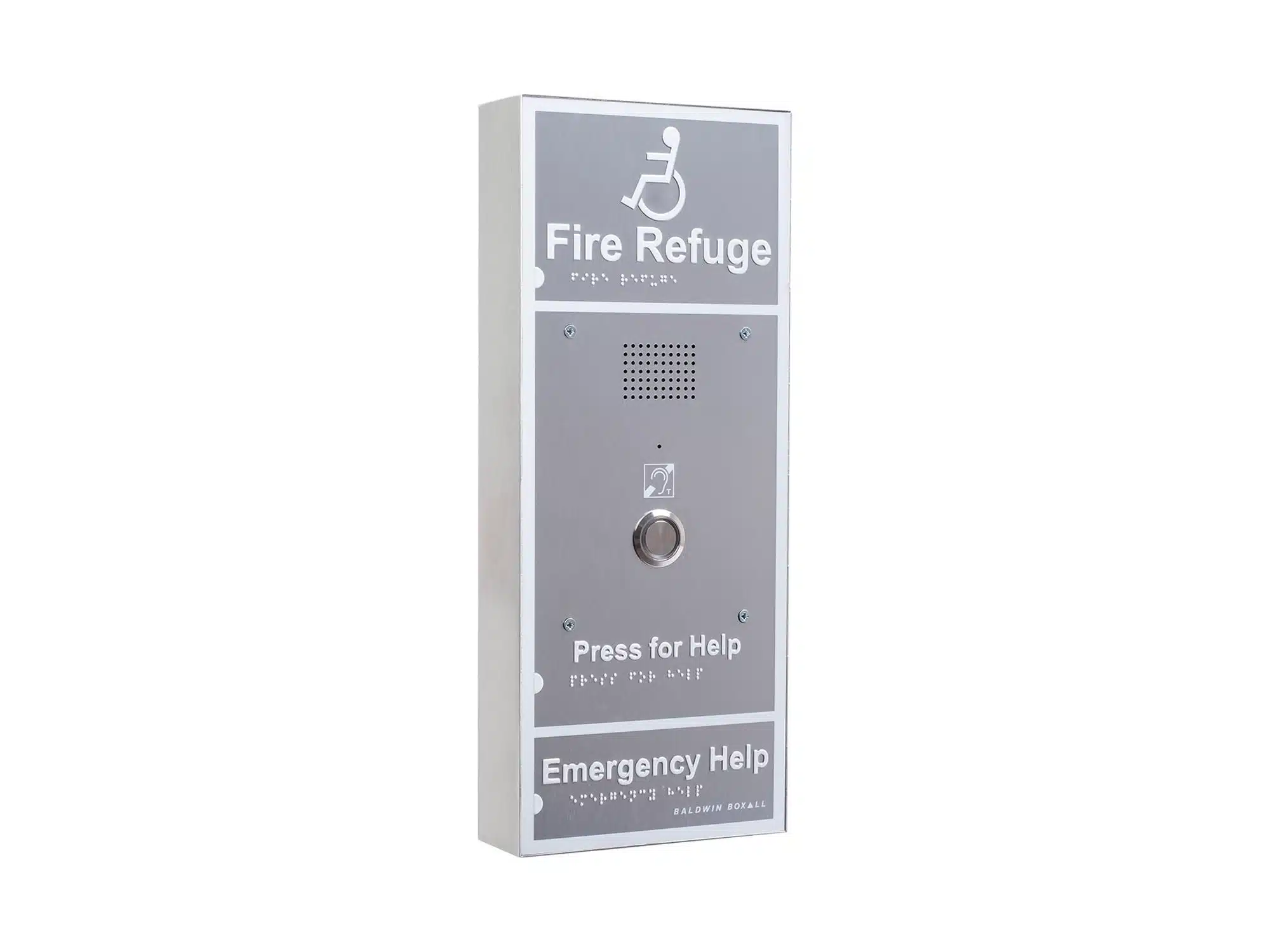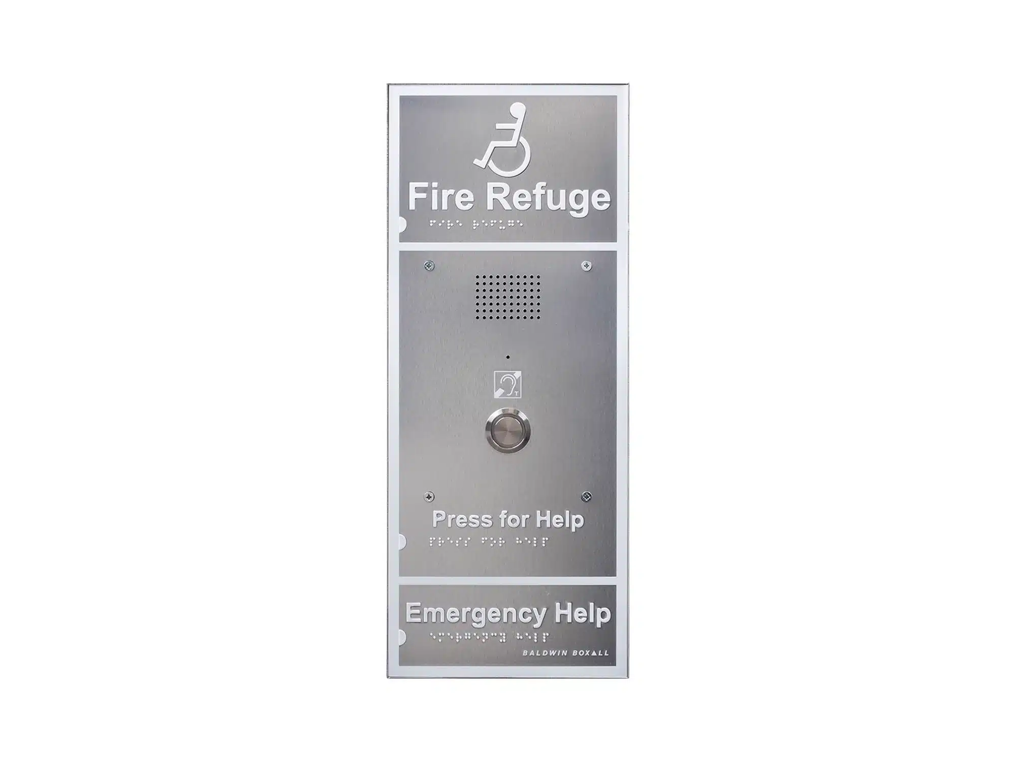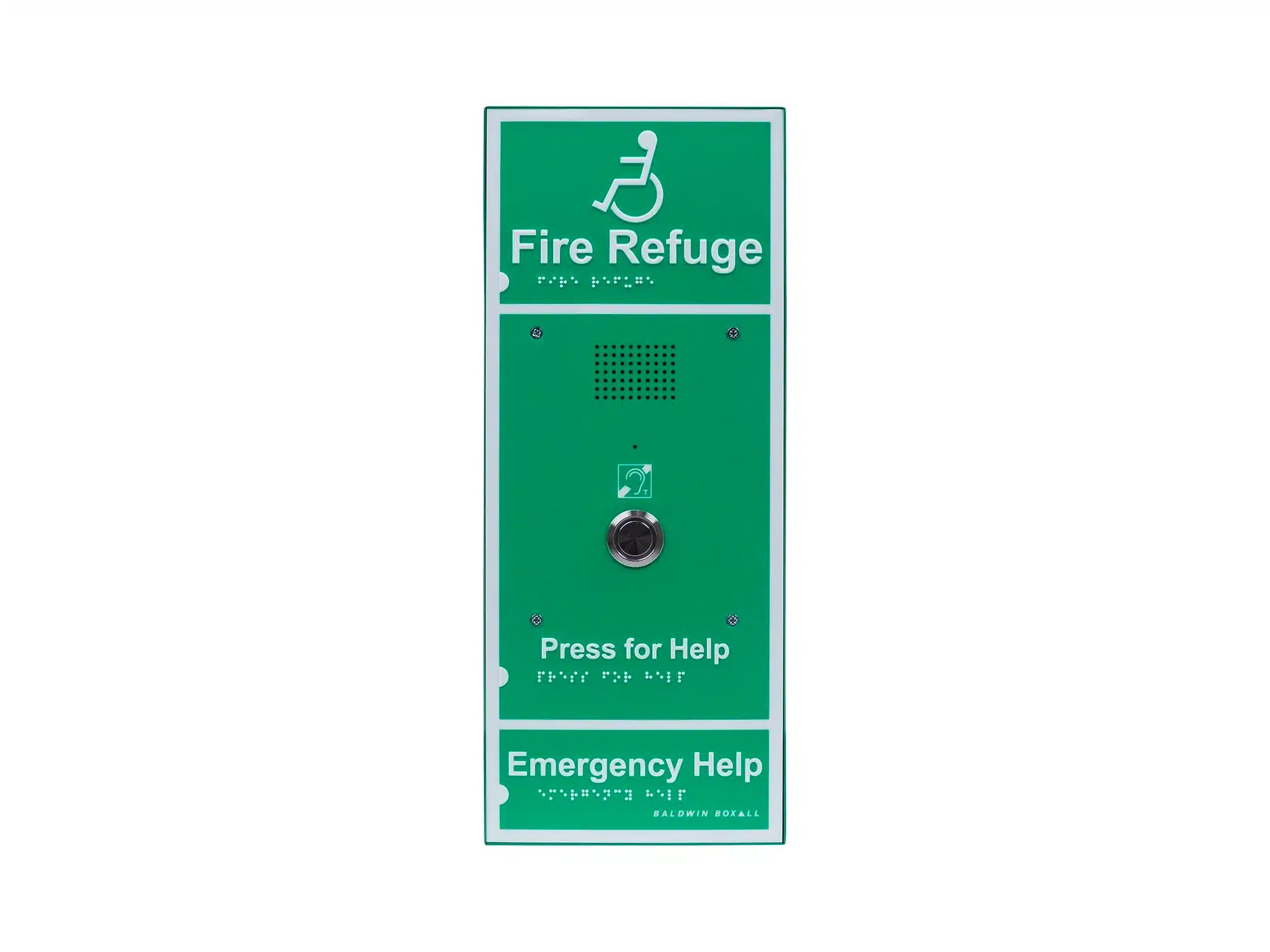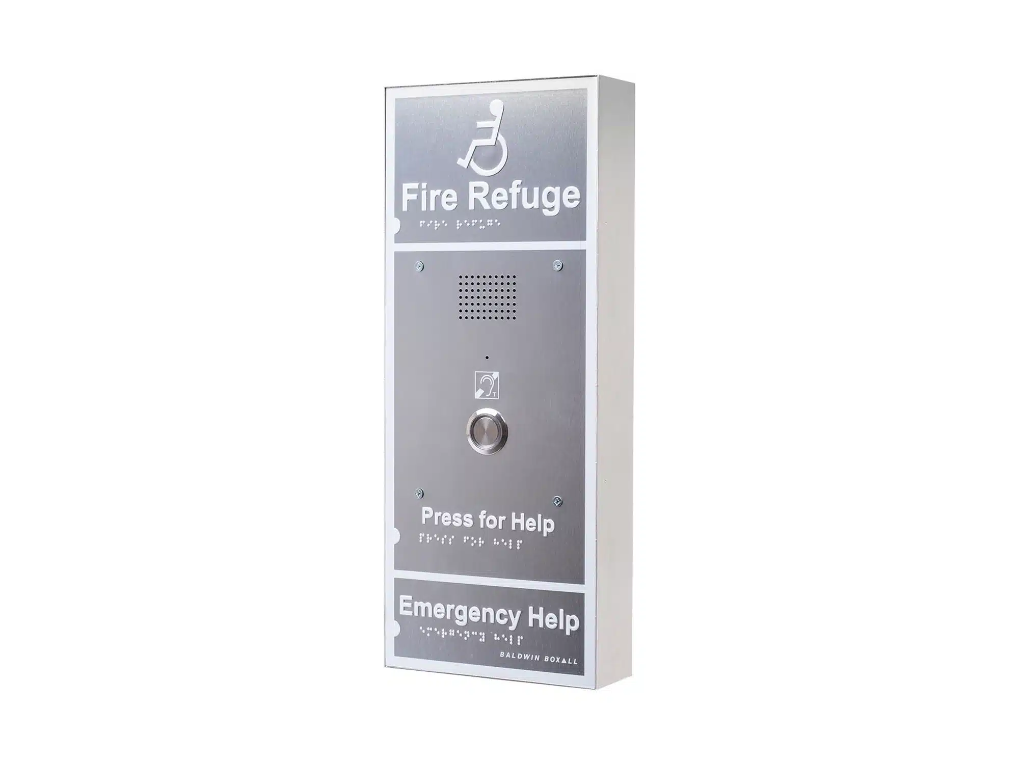 The Advance OmniCare Disabled Refuge outstation is bigger than the Standard unit and features Braille, luminescent text & surrounding border and a larger call button. An additional benefit of the Advance outstation is its integral hearing loop to assist with speech clarity for those with hearing aids.